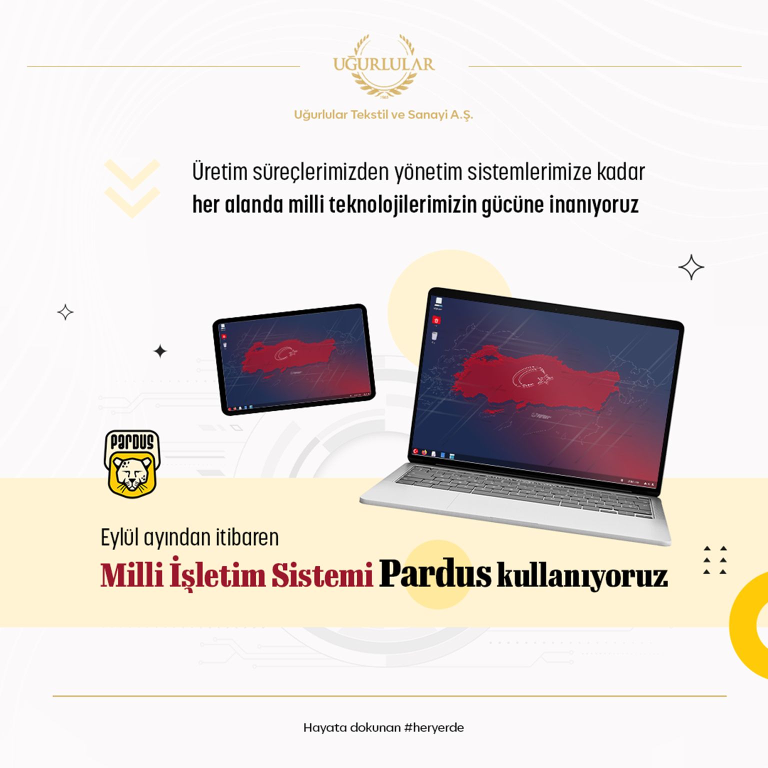 Uğurlular Tekstil : “Ulusal kaynaklarımızın gücüne inanıyor, milli ve yerli teknolojilere verdiğimiz desteğin bir göstergesi olarak 2024 Eylül ayından itibaren Milli İşletim Sistemi Pardus kullanıyoruz.” şeklinde açıklama yaparak, Microsoft lisans maliyetlerinden ve sınırlarından kurtulmak için büyük bir adım attı.
