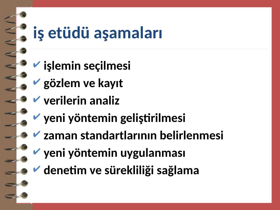 - Etüdü yapılacak işin veya süreci seçimi (Metot etüdü ve iş ölçümü)